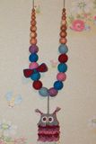 Слингобусы – это вязаные бусы, которые были придуманы мамами, носящими детей в слингах. Такие бусы не только предмет украшения, но и развлечение для малыша, который, играя с вязаными бусинами, познает мир. А где как не в слинге малышу удобнее всего играться с бусинами, которые висят на шее мамы и при этом являются абсолютно для него безопасными. Ну и конечно же такие бусы станут отличной игрушкой, которую легко взять с собой и дать малышу в любом удобном для игры месте.Первая полезная функция слингобус – это развитие мелкой моторики малыша, с помощью которой стимулируется и речевая деятельность.Вторая полезная функция – это развитие цветового и звукового восприятия. Именно поэтому слингобусы не бывают однотонными, а чаще всего они яркие, цветные, радующие глаз малыша. Ну и конечно же игра с вязаными слингобусами стимулирует развитие координации движений. В период появления первых зубов, слингобусы станут отличным массажером для десен, являясь своеобразным прорезывателем. А для подросшего ребенка бусины превращаются в развивающую игру, можно по бусинам учиться считать, либо играть с ними, угадывая разные цвета. Ну а для мам бусы – оригинальный аксессуар и незаменимый помощник для отвлечения внимания ребенка. Выполнены из экологичных материалов:: Можжевеловые бусины, бусины из акации,Нить х/б "Ирис". Длина сложенных вдвое бус-50 см; длина бус, сложенных вдвое только с бусинами -10 см;высота совы 8 см, внутри совы 5 деревянных бусин.
