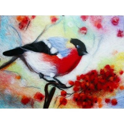 "Снегирь" - не просто знак удачи. Появление этой красногрудой птицы символизирует встречу с божеством зимы, хранителем новогодней тайны, а ещё и ключей от невозвратного мира детства! Выполнена в технике шерстяная акварель Размер 20*30 Оформлена в раму под стекло В стоимость включена пересылка в любую точку мира