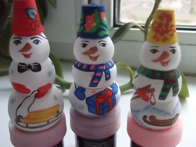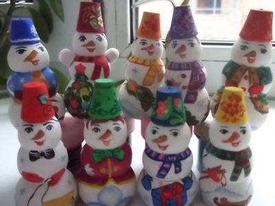 Снеговички к Новому году расписаны гуашью , покрыты 4 слоями лака