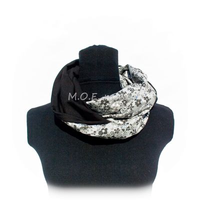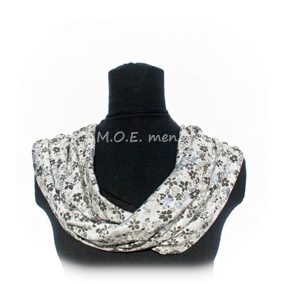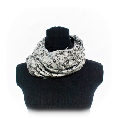 Трикотажный (вискоза) двусторонний снуд. Легкий, почти воздушный. На стороне с цветочным рисунком некоторые лепесточки нежно блестят на солнце серебром. Лето, Весна, Осень