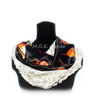 Двусторонний Снуд, одна сторона из искусственного меха с серебряным напылением, вторая - натуральный шелк. В холодные зимние дни защитит от ветра и снега. А в праздничные вечера чудесно украсит Ваш образ. Лето, Весна, Зима, Осень