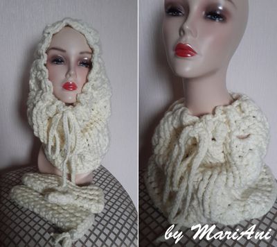 Снуд и варежки, сделанные объемной вязкой согреют Вас холодными зимними деньками:) Состав: шерсть и акрил