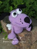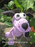Весёлый пёсик по МК А.Захаровой (Меджик) с небольшими изменениями. Игрушка бескаркасная, лапки болтаются. Умеет сидеть, лежать. Можно использовать в качестве брелочка. Косточка пришита к хвостику. Глазки вязаные. Рекомендации по уходу: ручная стирка. Материалы: вискозный шёлк, хлопок, синтепон Размер: Сидя - около 10 см, стоя - около 15 см