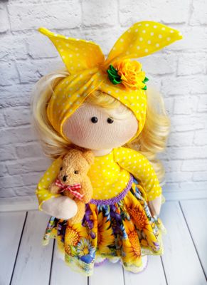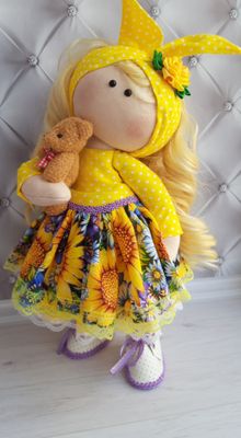 Кукла текстильная, сшита из трикотажа, набита холофайбером. Интерьерная куколка зая ростиком 30 см, выполнена из трикотажа. Ручки у нее сгибаются. Одежка не сьемная. Прекрасный подарок на любой повод или просто как частичка интерьера. Сшита с любовью и теплотой! Необычный подарок ручной работы всегда будет уместен, к любому случаю, и вызовет много положительных эмоций!
