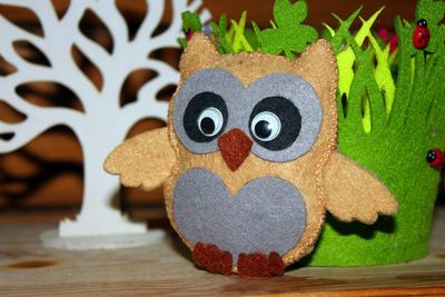 Выполнена из фетра,глаза пластиковые с подвижными зрачками