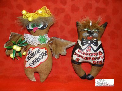 Игрушки созданы руками Оксаны. Высота совы 21 см, Кота 19 см.