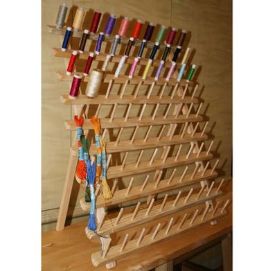 Подставка-органайзер для катушек, ниток на 120 катушек. Для катушек шириной ДО 4 см. Высота штырей 5 см, диаметр штыря 6 мм, расстояние между штырями 4 см. Размещение возможно настенное и настольное. Устройте Вашим ниточкам комфортное существование. Базовый размер: - на 120 катушек (10 планок по 12 штырей), габариты 48 см (шир) х 60 см (выс)