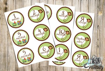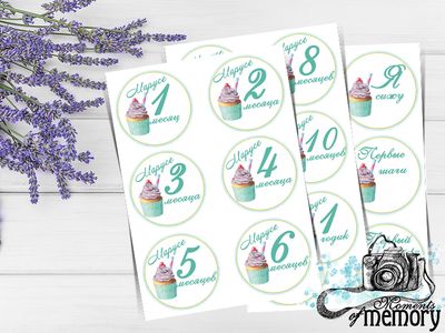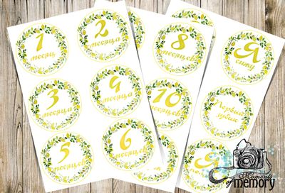 Наклейки для памятных фотосессий малыша по месяцам. Сделаем воспоминания о самых важных моментах еще ярче! Отличная идея подарка родителям малыша! Наклейки доставляются в электронном виде,для последующей распечатки в любом салоне печати.