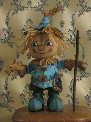 Игрушка выполнена в технике "Грунтованный текстиль" по мастер-классу А.Голеневой. Личико расписано акриловыми красками на основе иллюстраций Леонида Владимирского к серии книг "Волшебник Изумрудного города". Страшила устойчиво стоит на ногах, ручки подвижные. Игрушка винтажная, не предназначена для игр.