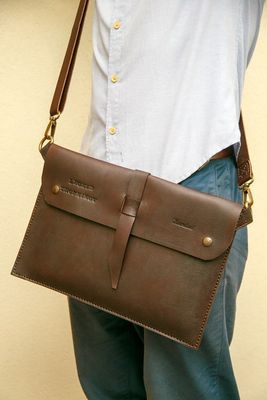 "Сумка-чехол с плечевым ремнем для вашего ноутбука/ кожа быка/ исключительная ручная работа/ Вы можете сами выбрать цвет кожи и нитей для изделия. Тиснение инициалов владельцак!"