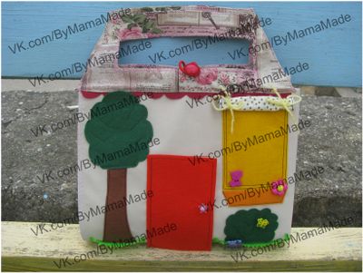 Представляем вам Эксклюзивный подарок для любимых девчушечек!!! Сумка-домик для куколки - это потрясающий сюрприз для любителей игры в куклы. В нем все по-настоящему: В Спальне есть настоящий шкаф,куда можно повесить на крючочки платьица,юбочки,кофточки. В нижний ящичек складываются туфельки. Комод имеет два ящичка для расчесочек, заколочек. Уютная постелька состоит из двух подушечек и одеялка, которые совсем по-взрослому разложены в наволочки и пододеяльничек. Липучки фиксируют одеялко и подушки и куколка спокойно будет смотреть разноцветные сны. Также есть зеркало в спаленке, и куколка может присываться с удобством. Рядом находится гостиная. В ней расположен уютный камин, мягкий диванчик, на котором куколку ждет ее любимый мишка. Большое окно с красивой тюлью можно занавесить, если в игрушечном мире наступил вечер. На столике можно поставить заварушник и чашечку с чаем или даже почаевничать с гостями. В ванной комнате есть душик, которым можно управлять или же закрепить на специальной липучке. Куколке удобно купаться во вместительной ванне и можно спрятаться за яркой ширмочкой. А потом снять халатик с крючочка и расчесаться возле второго зеркала. Все принадлежности можно сложить в ящичек под зеркалом. Кухонька готова встретить ароматным пирогом в духовочке или же приготовить любое другое блюдо на усмотрение хозяйки. Конфорки расположены как на взрослой прите и есть ручки для регулировки "огня". В шкафчиках есть место для хранения посуды, кастрюлек, чашечек. А в холодильнике много места для готовой еды. Если же малышке нужно собираться с мамой или подружками на уличку, на пляж или просто в гости - домик компактно и просто складывается в сумочку и готов путешествовать вместе со своей хозяйкой в любое место. С "уличной" стороны домика расположена дверь, которая гостеприимно раскроется для куколки, окошко, на подоконнике которого присел веселый песик, а котеночек спрятался в травке возле кустика и готов ловить яркую бабочку. В подоконник можно поставить горшки с цветами и поливать их из леечки. Такой подарок придется по вкусу любимой доченьке или внучке, а также разовьет ее пальчики (ведь внутри много различных крючочков, шнурочков и мелких деталей), а также воображение и фантазию. А игра превратиться в волшебную сказку. Домик можем дополнить на заказ комплектами из куколки (или вы можете использовать любую куколку ростом до 12-13 см), одежды, обуви, предметов, посуды, готовых блюд, овощей, фруктов и т.д. Или же вы сами можете сотворить с любимой доченькой хозяйку для этого яркого и необычного домика...