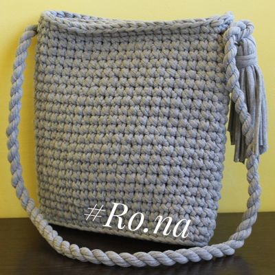 Сумка связана крючком Цвет серый меланж Подклад с корманом