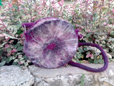 Вместительная сумка выполнена из шерсти в технике мокрого валяния. Подклад из льна