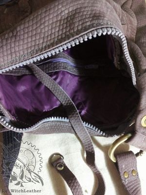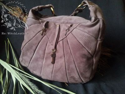 Выполнена из натуральной кожи, нубук, заводское тиснение под змею, толщина 1,2-1,4 мм, производство Куба. Лямка нерегулируемая до 84 см, усилена стропой. Габариты 29*28*11 Украшения: лоскутное шитье, металлическая фурнитура латунного и бронзового цветов. Подкладка из прочной ткани сиреневого цвета. Одно основное отделение на молнии, имеется внутренний карман на молнии, кожаный шнурок с кольцом для ключей.