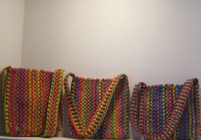 Размеры сумок: 25*20,23*20,20*20. Сумка в технике макраме из капронового шнура. Водонепроницаемая подкладка, замок трактор.