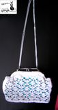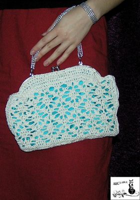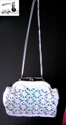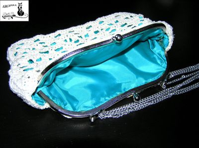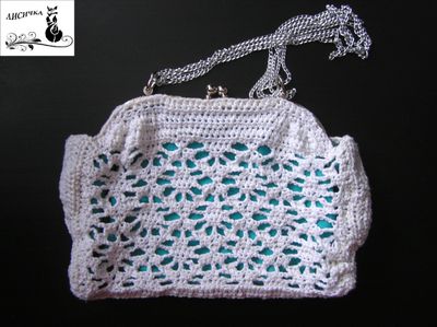 Изящная сумочка-клатч станет ярким дополнением в образ! Ажурный верх связан вручную из х/б ниток, атласная подкладка контрастного цвета подчёркивает узор. Размер: 25х17см., ручка 90 см. Красивая и модная обновка или прекрасный подарок!