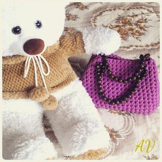 Вязаная сумочка прекрасный аксессуар в Вашем гардеробе, имея небольшие размеры она довольно вместительна. Изготовлена вручную, материал верха - 100% хлопок, ручки - дерево. Размеры 25*12*17см. Рекомендована деликатная стирка в мешочке, при 30°.