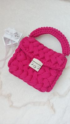 Размер сумки по внешним краям: ширина 22, высота 20, глубина 9 Полностью выполнена из хлопка, без подклада. Отлично держит форму💪 Цвет фуксия Короткая ручка в цвет, можно добавить цепь, чтобы носить на плече 😍