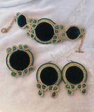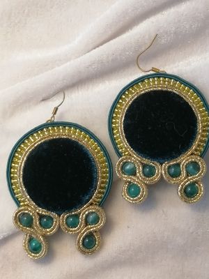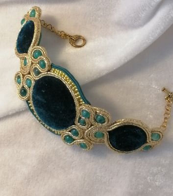 Мерцание бархата, блеск золота - именно таким я вижу этот сказочный комплект: роскошь и простота форм! Серьги, брошь и браслет родились в полете музы) Темно-изумрудный бархат, золотой и изумрудный сутаж, бусины "под нефрит" - именно из этих материалов сложился мой праздничный комплект украшений)