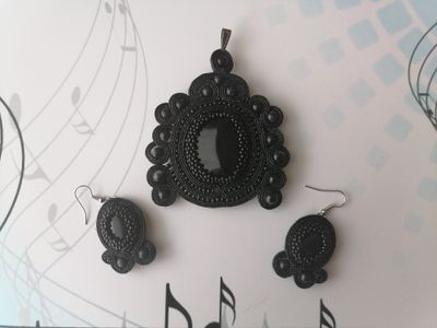 Черный цвет в одежде — признак элегантности и роскоши. Одним из самых противоречивых цветов является черный. Одни его считают слишком мрачным и траурным, другие – элегантным и благородным. Безусловно, одно – черный цвет является универсальным, он одинаково уместен на работе и на вечернем мероприятии... На фото сутажный комплект "Песня ночи", состоящий из пары серег и кулона .