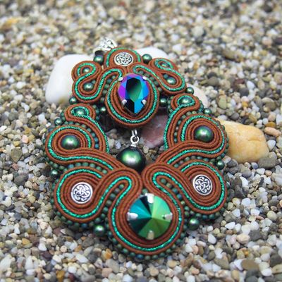 Изящный кулон с кристаллами и жемчугом сваровски. Форма получилась под вдохновением восточных арабесок, а цветовое решение - день св. Патрика. Вот такой вот Восточно-Ирландский кулончик :) Авторская работа. Единственный экземпляр. Повтор невозможен.
