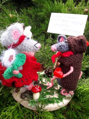 Сказочный Лес. Утро. Шуршат, весело попискивая, в траве мышки. Радостно щебечут и чистят свои перышки птички. То тут, то там слышится нежный перезвон бубенчиков . Уютная милая пара мышек. Воплощает не только то, что есть, но и то, о чем мечтаешь. О взаимности, о заботе, о безраздельном времени вместе...Эта вязаная композиция - символ единения двух сердец.Такая композиция будет прекрасным подарком для влюблённых сердец.Возможно исполнение в другой цветовой гамме.