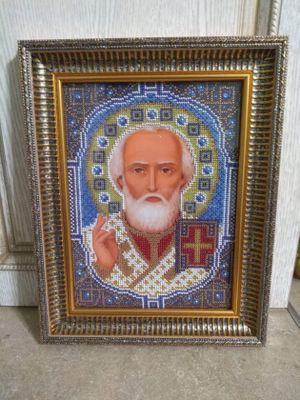 Икона Св. Николай. Вышита бисером. Размер работы без рамки 20х25 см