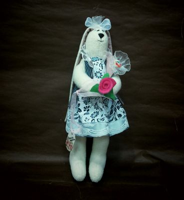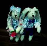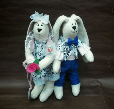 Свадебные зайки тильда Василий Василиса - милейшее создание принесут в ваш дом счастье и уют. Зайки сшиты из натуральных материалов, с ними можно поиграть. Благодаря пуговичным креплениям двигают ручками и лапками, могут сидеть и самостоятельно сидеть. Зайка Василиса держит в лапках цветочек розы, она очень любит цветы, а заец Василий очень галантный, он любит баловать Василису и дарить цветы. По вашему желанию сошью в любой цветовой гамме. Такую парочку великолепно милых заек принято дарить как в подарок молодоженам,так и на годовщину свадьбы, и даже на помолвку. Так же стоит подарить по любому другому поводу как девушками так и милым деткам. Материалы использованы для шитья заек: натуральный шерстяной флис, ситец, бязь, костюмная ткань, набиты зайки синтепухом. Работа представлена для примера. Могу сшить в любой цветовой гамме Размер: рост заек 35 см. Срок изготовления 5 дней.