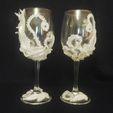 Свадебные бокалы украшены фигурками лебедей, сплетенныии из бисера