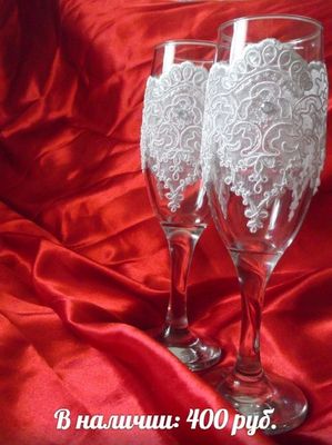 Свадебные фужеры для шампанского в наличии! Декорированы кружевом и стразами.