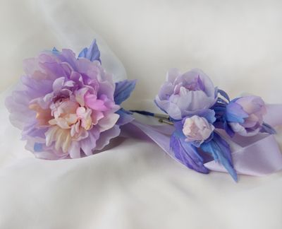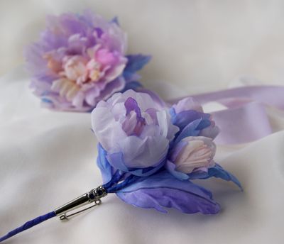 Бутоньерка и браслет из шелка. ручная работа