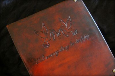 Эксклюзивный фотоальбом для хранения фотографий, оригинальный подарок на свадьбу, юбилей, день рождения. Полностью ручная работа, фотоальбом выполнен из натуральной кожи растительного дубления, с ручной гравировкой (тиснением) обложки с двух сторон. Внутри альбома итальянский зажимной механизм с кольцами увеличенного диаметра, 30 магнитных (самоклеющихся) листов. Вам нет необходимости клеить уголки для фотографий. Всё, что Вам нужно - положить фото любого размера под прозрачную пленку. Эксклюзивный подарок на века!!! Размер 29Х26 см. Возможно исполнение именного фотоальбома под заказ в любом цвете, с другим рисунком и надписями.