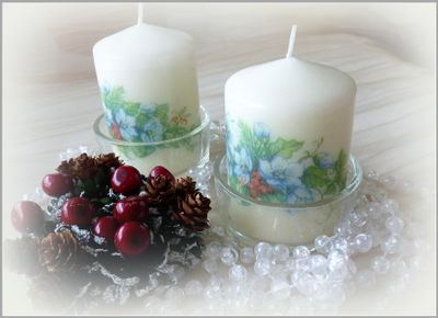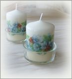Свеча, декорированная в технике декупаж, это не только украшение интерьера, но и вполне функциональный предмет - её можно зажечь как и обыкновенную свечку. Рисунок нанесён на всю поверхность свечи, поэтому она отлично смотрится с любого ракурса. Свеча располагается на подставке из прозрачного толстого стекла. В наличии 2 свечи. Цена указана за 1 свечу. Рекомендации по уходу: Не ставить/не хранить рядом с источниками тепла. При использовании соблюдать правила пожарной безопасности!!!