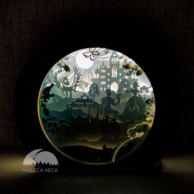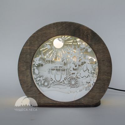 Сюжетный ночник из дерева с вставкой из акрила. Светильник "Королевство" чудесное дополнение детской комнаты, интересная объемная история вовлечет и успокоит ребенка, а мягкий рассеивающий свет поможет ему заснуть. В ночнике использовано два вида акрила: цветной транслюнцентный (полупрозрачный) на корпусе и прозрачный безопасный акрил вместо стекла, защищающий от пыли и повреждений внутреннюю часть ночника. На прозрачном акриле выполнена гравировка. Питается он от блока питания 12 в, что безопасно для Вашего ребенка. Источником света является светодиодная лента, мощностью 5 вт, которая не нагревается и имеет долгий срок службы. Покрашен ночник красками на водной основе, что также безопасно для малыша. Возможно изменение основного макета светильника и нанесение гравировки по Вашему заказу. Изделие можно покрасить по Вашему желанию в любой цвет из нашей линейки. Размер: Ширина - 21 см Высота - 19 см Глубина - 9 см Толщина материала - 6 мм