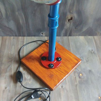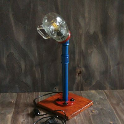Настольный светильник из водопроводных труб с плафоном-кружкой в виде мяча станет отличным подарком и украсит интерьер. Лампочка в комплекте. Кнопочный выключатель.