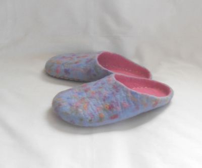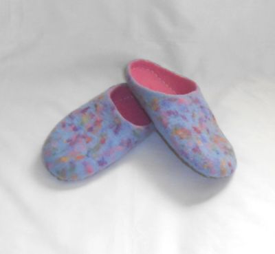 Тапочки домашние валяные с усиленной пяткой, сделаны из шерсти. В качестве подошвы пришит кожзаменитель. Размер 36-37
