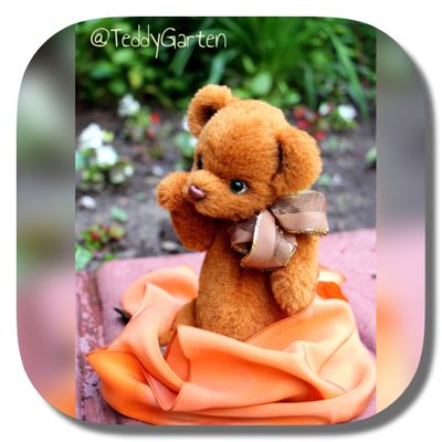 Коллекционный авторский мишка Тедди. Сшит полностью вручную, набит опилочками, глазки стеклянные, производство Германия. Пузико набито неплотно. Игрушка не предназначена для маленьких детей.