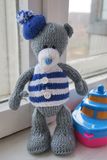 Мишкин рост от пяточек до кончика помпона - 26 см. Шапочка и кофточка не снимаются. Ручки, ножки двигаются. Умеет сидеть и стоять. Шерсть + акрил Наполнитель - суперпух