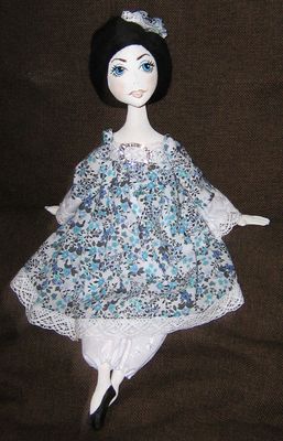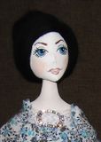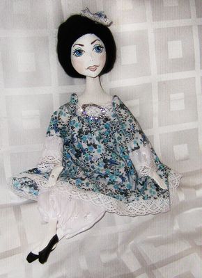 Текстильная милая кукла, ростом 35 см. Сшита из натуральных материалов, лицо расписано акриловыми красками. Одежда не снимается, волосы из натуральной шерсти. Кукла самостоятельно не стоит, но сидя может принимать множество интересных поз. Станет приятным украшением туалетного столика.