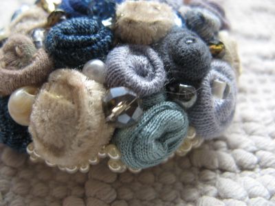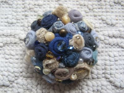 Нежная и выразительная брошь из маленьких текстильных розочек.. Каждая сшита на руках, никакого клея, или уж тем более клеевого пистолета)) С этим я не дружу) Брошь необычная и гармоничная.., два в одном... При желании можно повесить на шнурочек и будет кулон.. Цвета изумительные, песочно - бежевый, бирюза и индиго.. Брошь украшена натуральными камушками, стеклянными, чешскими бусинами и бисером. 6.5 см.