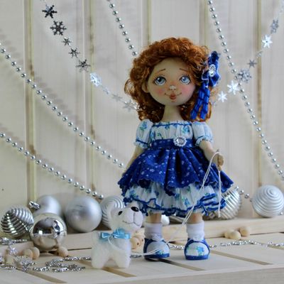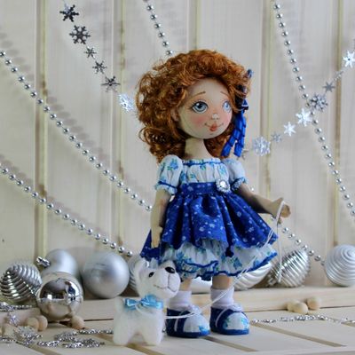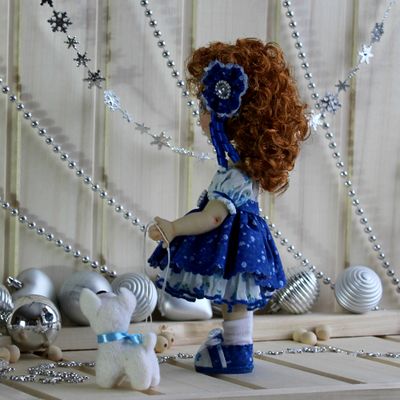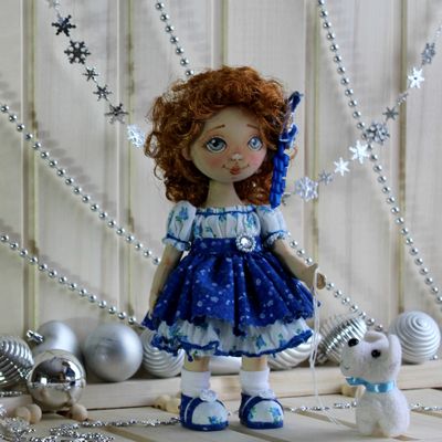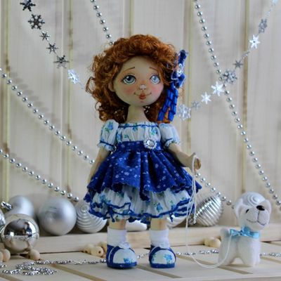 Все мы ждем самый волшебный и чудесный праздник - Новый год. Вы желаете сделать необычный, незабываемый подарок? Знакомьтесь, Малышка, текстильная интерьерная куколка в синем платьице порадует вас. Высота куколки 25 см. Тело сшито из итальянского хлопка фабричного крашения, набита синтепухом. Благодаря особой плотности набивки и качественному наполнителю обеспечивается долговечный и красивый внешний вид куклы. Ручки и ножки на пуговичном креплении, устойчиво стоит самостоятельно. Платьице, украшение на головке, панталончики, носочки, туфельки не снимаются. Волосики закреплены лаком, не сваливаются. Личико расписано пастелью, акрилом, закреплено лаком. Присмотритесь, возможно, эта Малышка разбудит ваши детские воспоминания и веру в чудо. Может использоваться в качестве игровой для девочки старше 7 лет. Куколка приедет к вам в подарочной коробке.