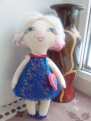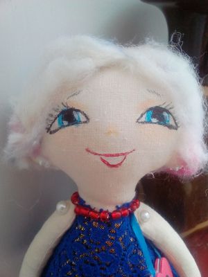 Куколка сшита из бязи, волосы шерсть. Платье из гипюра, подклад парча. На плече сумочка, в ушах сережки! Украшена бисером. Отличный подарок для девочки!