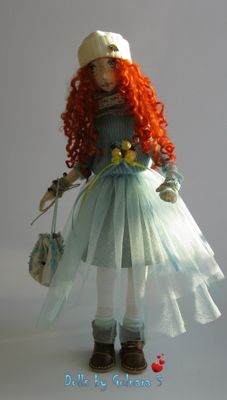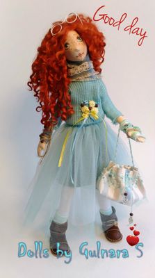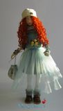 Куколка в мятном, Милая и романтичная, с роскошными натуральными кудрями овцы английской породы,немного волшебная ( куколка заряжена энергией РЕЙКИ на здоровье и благополучие). Сапожки из натуральной кожи , сделаны мной, платье и сумочка расшиты бисером и атласными лентами. Ножки и ручки гнуться, сидит и стоит самостоятельно , украсит любую полочку. Повтор не возможен!