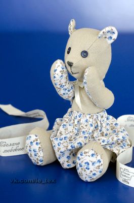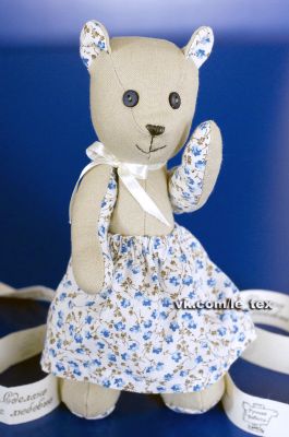 Нежное создание из льна и хлопка. Лапки подвижны. Игрушка игровая, все детали пришиты или вышиты, юбочка на резиночке. 23 см.