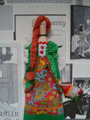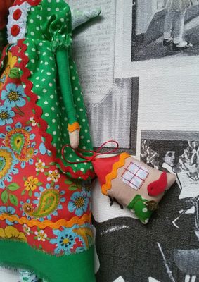 Тильда берегиня Вашего дома. Выполнена из хлопка, одежда не съемная, рост 50 см, подвешивается за петельку, в ручке домик, бусы-кошачий глаз. Готовьтесь к праздникам заранее, дарите необычные подарки