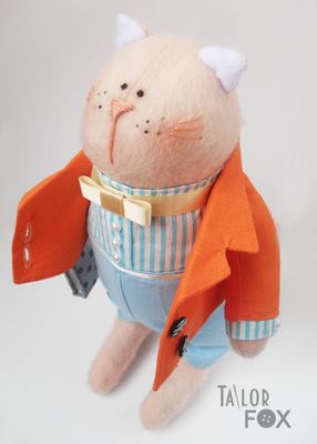 https://www.instagram.com/tailorfox_anastasiyam/ Добрый Котофей - чудесный подарок Вашим близким. Существует примета, если первым впустить в дом кота, он подружится с домовым и защитит семейный очаг) С Котофеем Ваш дом всегда будет в безопасности. Ножки,ручки и хвост двигаются. Пиджак расстегивается. Все детали проработаны с любовью и вниманием. Высота - 30 см.