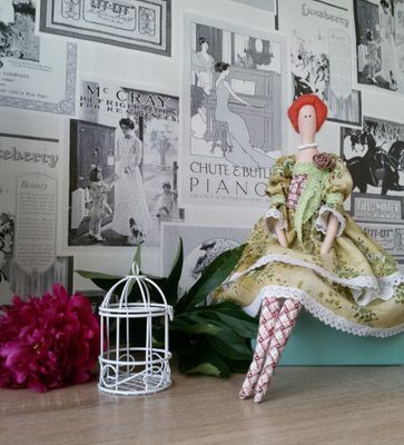 Интерьерная кукла в стиле Тильда "Мадам", сидит самостоятельно, одежда не съемная