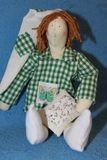 Веселый и озорной мальчик Афоня подарит вам хорошее настроение и добрые сны. Одет в колпачок, рубашку поло, носочки и штанишки, в руках держит подушечку. Рубашка поло украшено бабочкой. Сидит, может стоять у опоры. Рост 33 см. Возможно изготовление в вашем варианте одежды. 100% handmade. Материалы: хлопок, шерстяная пряжа, синтепух.