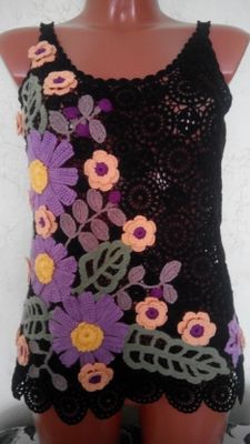 Топ ручной работы, выполнен крючком в ирландской технике из итальянского хлопка, сетка крючок 1, 0 пряжа 100г/900м, мотивы крючок 1,25. Модель авторская, копирование и использование фото запрещено. Цена актуальна для размера 42-46.Может быть выполнена в другой цветовой гамме на заказ срок 2-3 недели в порядке очередности с момента внесения предоплаты по договоренности.В реальности краски топа ярче и сочнее, цветопередача зависит от монитора компьютера Рекомендации по уходу: ручная стирка, носить слюбовью