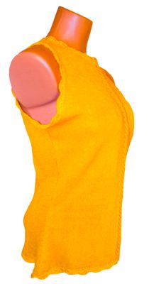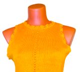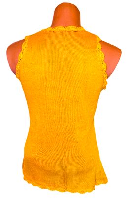 Изготовление: Готовая работа Описание Модель выполнена на основе машинного трикотажа с ручной отделкой крючком. При изготовлении использована пряжа 100% лен (полотно достаточно жесткое). Натуральное волокно пряжи, открытая пройма "американка" делают вещь актуальной в любую жару. Автор: Измайлова Т.В. - Studio Vita700 Материалы лен 100% Размеры - 44